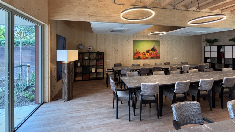 Al jaren kwamen bewoners van Os Bosse Heukske in Brunssum samen in de hal van het appartementencomplex. Hier konden ze genieten van een kop koffie met vlaai en bijpraten met elkaar. ‘Samen is gewoon alles leuker’, is hier het motto, en daar zijn wij het helemaal mee eens! Sinds 6 oktober 2025 vinden de activiteiten plaats in een gloednieuwe ontmoetingsruimte.