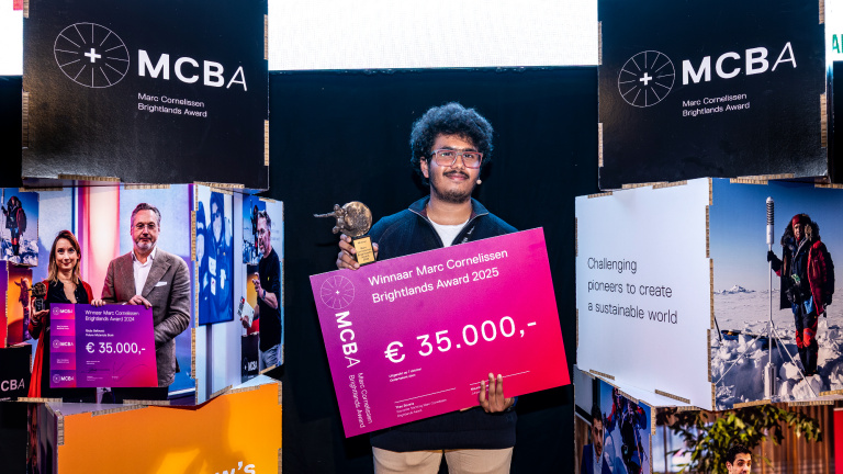 Weller feliciteert winnaar van Marc Cornelissen Brightlands Award